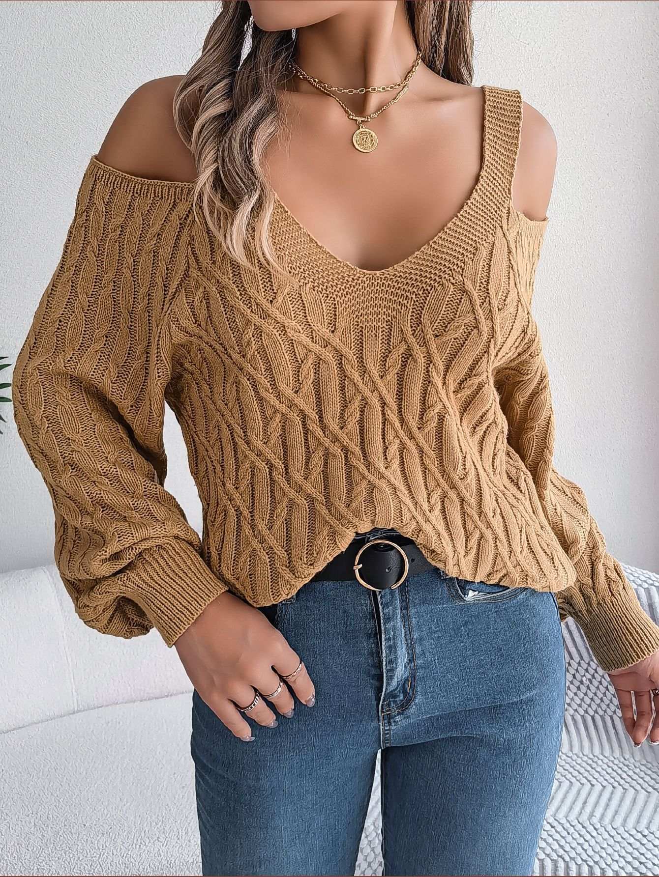 Virkad kofta med både v-ringning fram och bak. Breda axelband med bara axlar.