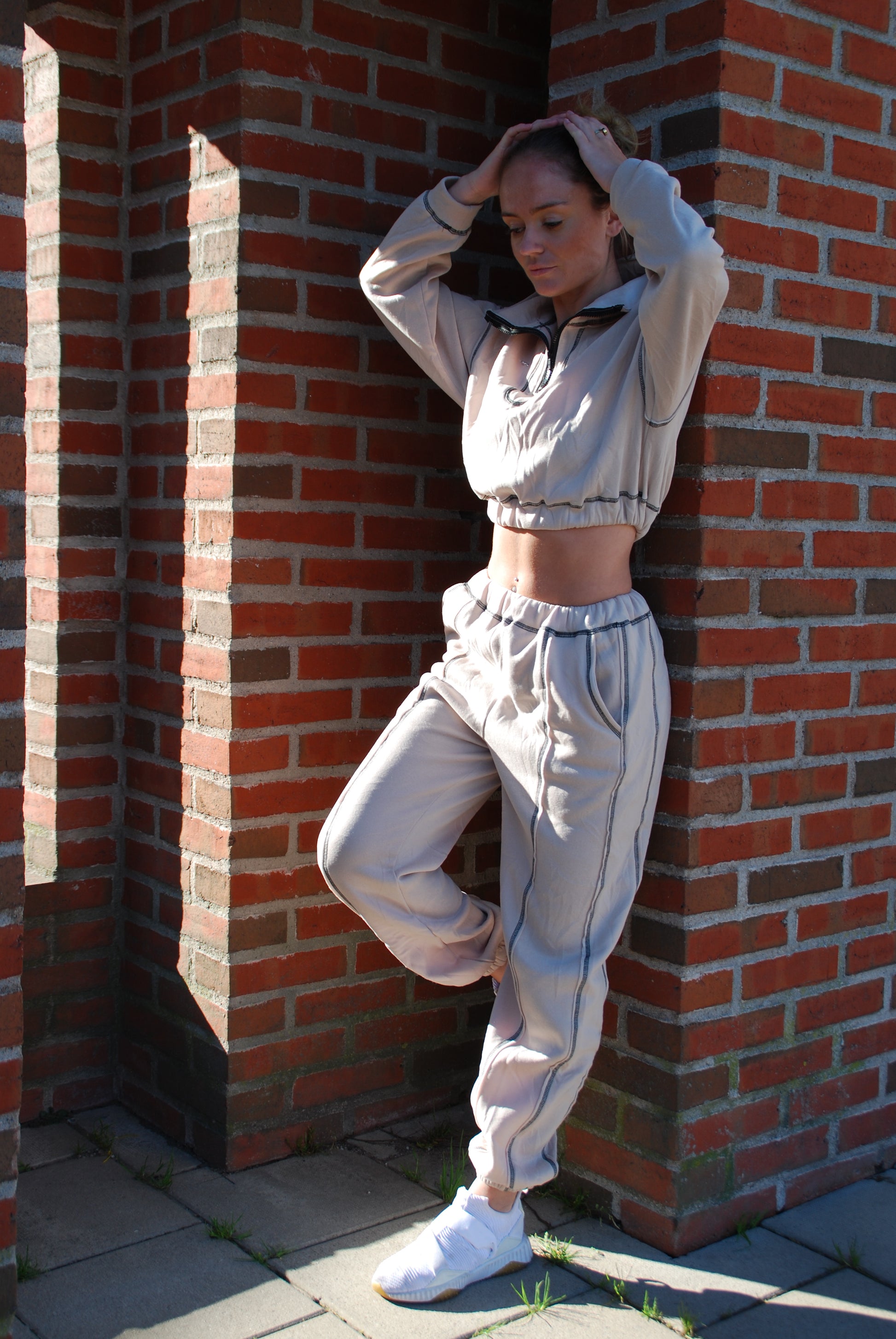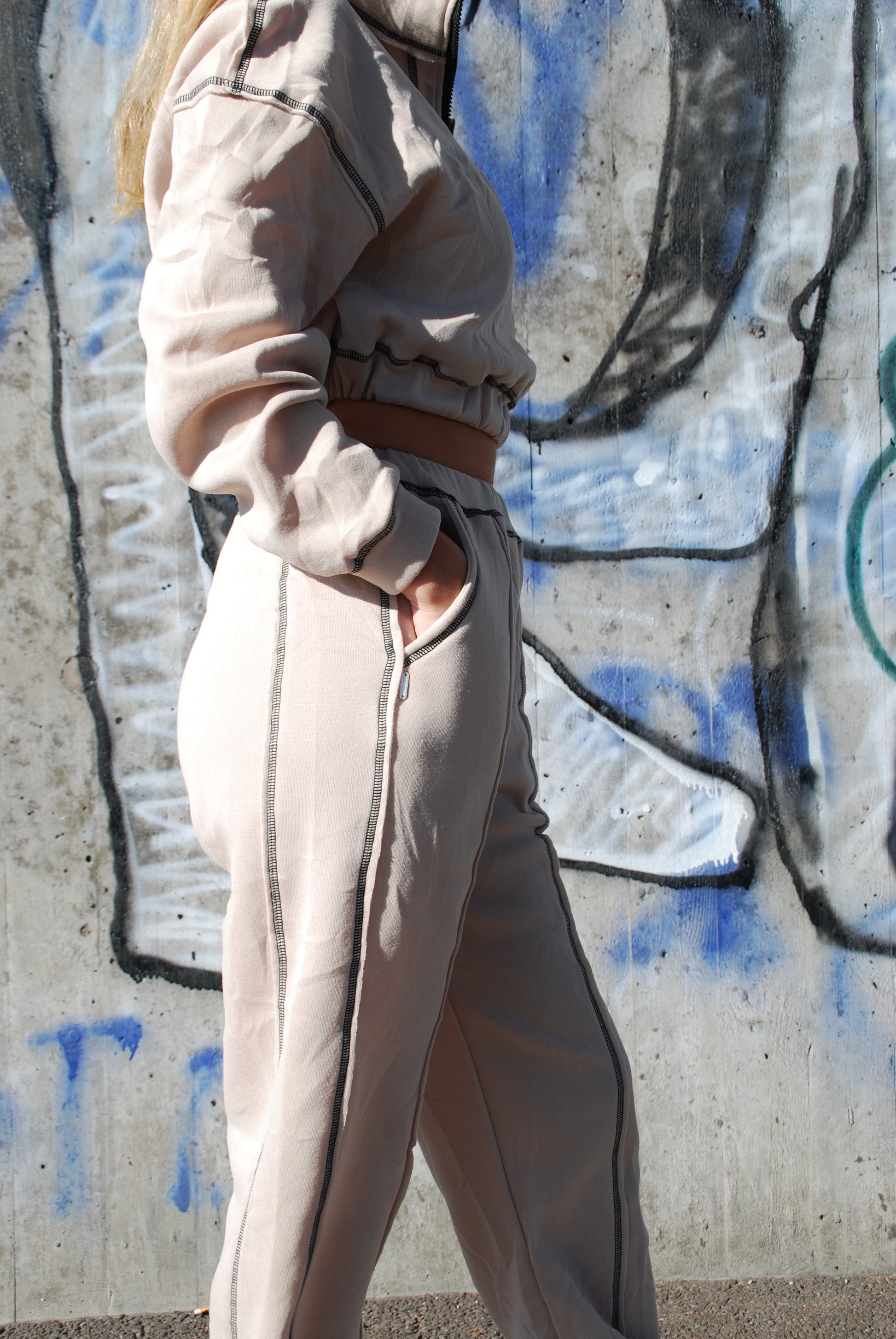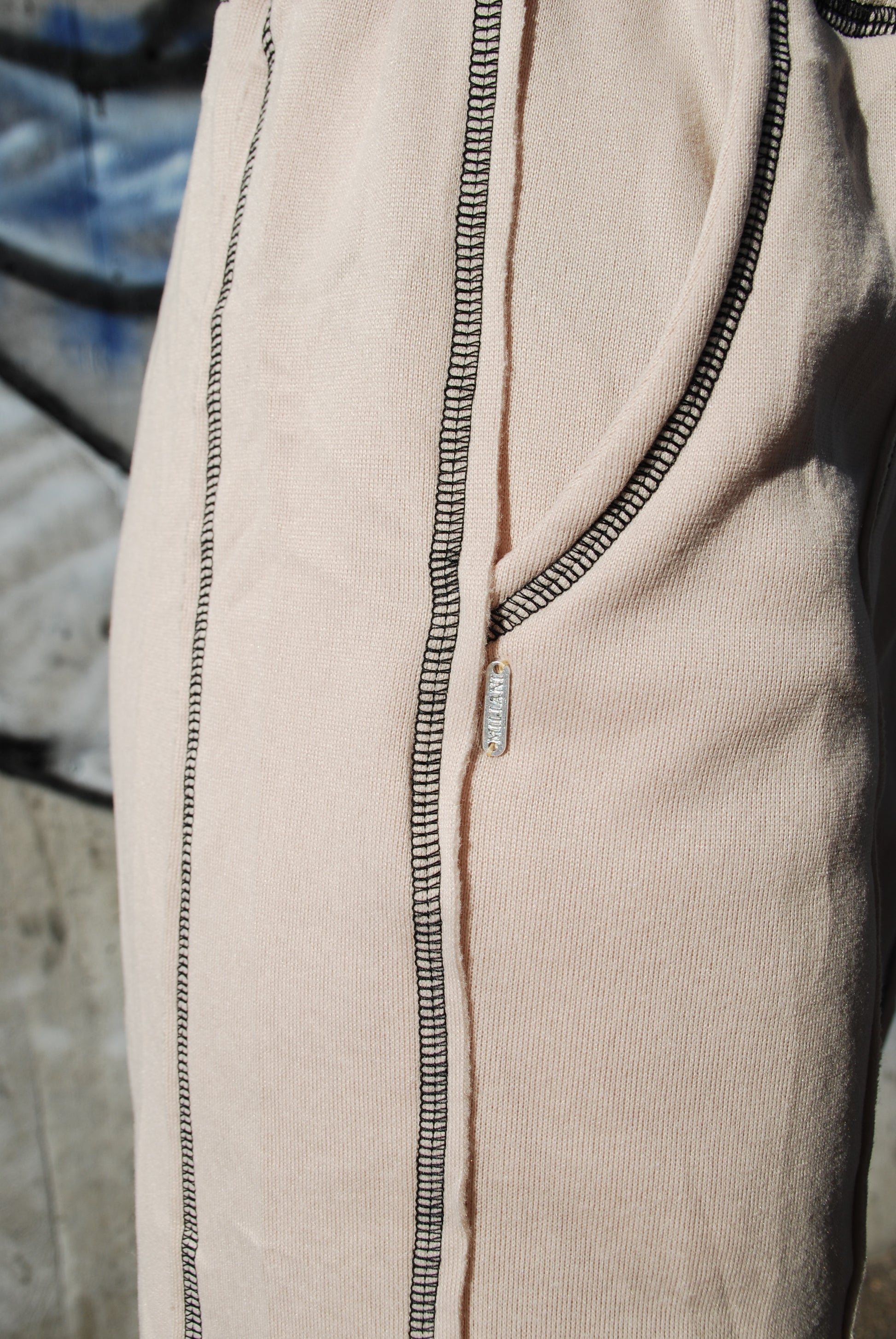 En mjukisbyxa med en varm och skön insida. En silvrig metallplatta med märket MILIANI är dit sydd på höger sida ficka framtill. Resårband runt midjan och benslutet. Synliga sömmar.